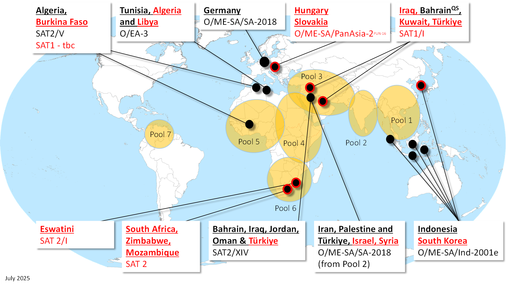 We have continued to monitor the spread of the SAT2/XIV lineage that has emerged in the past six months to cause FMD outbreaks in countries in the Middle East. This lineage originates in East Africa (Pool 4). Samples tested during this quarter from Bahrain and sequences provided from Oman (via ANSES, France) show that viruses from this lineage have been recently detected in a number of Gulf State countries supporting the idea that trade of live animals into the Persian Gulf from East Africa represents the most likely route by which the SAT2/XIV topotype has been introduced into the region. In Türkiye, SAT2/XIV outbreaks have been reported in Eastern and Central Anatolia, while in the Thrace region SAT2 vaccines (SAT2/Eri-98 from international suppliers and locally produced homologous vaccines from the ŞAP Institute) are being rapidly deployed to try to limit the potential impacts and spread of this lineage. Similarly, prophylactic vaccination using SAT2-specific vaccines is also being used in neighbouring countries (such as Armenia and Georgia).